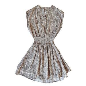 Rails Angelina Smocked Waist Tiered Mini Dress Sand Cheetah Linen Blend Size XS