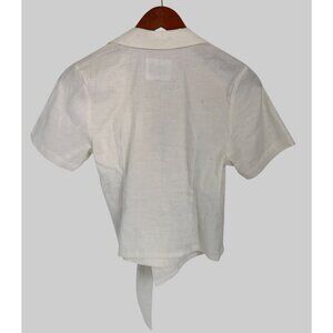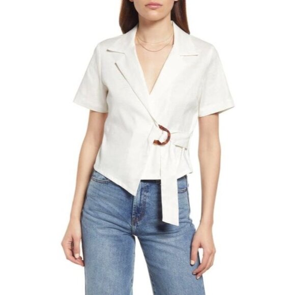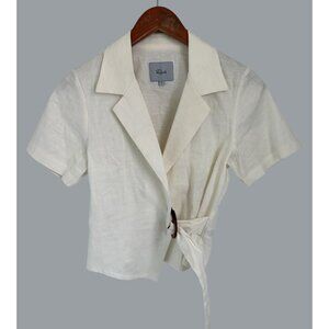Rails April Creme Short-Sleeve Linen Blend Wrap Blouse With Tie Detail - S