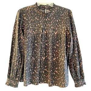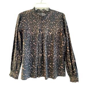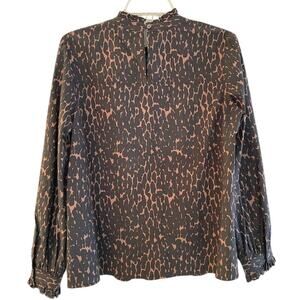 Rails Ariana Top In Savannah Poplin Pleated Front with a High Neck with Ruffle Detail in a Animal Print Black & Brown