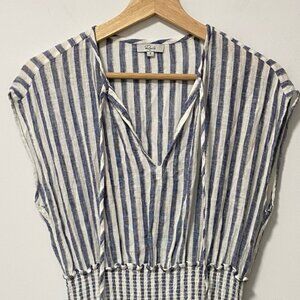 Rails Ashlyn Rio Stripe Top White with Blue Lines Size S — Linen Blend