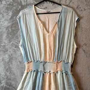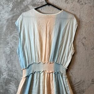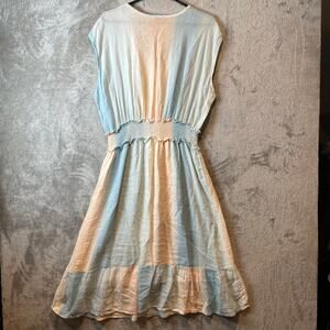 Rails Ashlyn Sunset Gradient Dress Size Large Linen Blend Blue Orange Peach