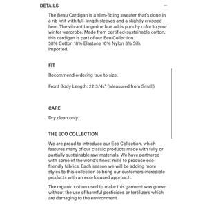The Rails Beau Tangerine Cotton Silk Blend Button Up Long Sleeve Cardigan is a stylish and versatile piece perfect for various occasions. The tight-knit design, V-neckline, and button accents give it a classic and sophisticated look. Made from a luxurious blend of silk, nylon, and cotton, this cardigan is comfortable and elegant, making it a great addition to your fall, winter, or spring wardrobe. Ideal for travel, parties, casual outings, formal events, or business meetings, this cardigan by Rails is a must-have for any fashion-forward woman.