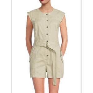 Rails Bessie Sage Dust Belted Romper Size S Cap Sleeves Organic Cotton Stretchy