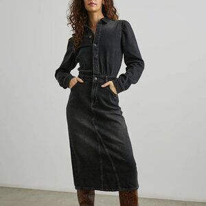 Classic, yet contemporary, the Beverly is an elevated take on the denim dress. Precisely tailored from 100% cotton, the Beverly combines the elements of a full-sleeve jacket with a streamlined midi skirt in a design that exudes modern sophistication. Finished with belt loops for styling versatility and a hybrid button-zip, the Beverly is as practical as it is polished.