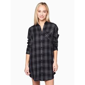 Rails Bianca Flannel Shirt Dress Women's Buttondown Small Grey Black Plaid Cozy