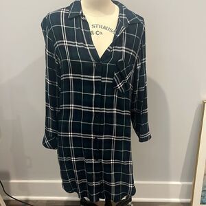 Stay stylish and comfortable with this plaid shirt dress. Featuring a classic green and white checkered pattern, it's perfect for casual outings. Pair it with sneakers for a laid-back look.