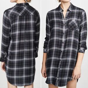 Rails Bianca Shirt Dress Onyx Slate Gray & White Plaid Button Front Size Small