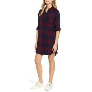 Rails Bianca Shirt Dress Plaid Flannel Button Down Mini Currant Navy Size XS