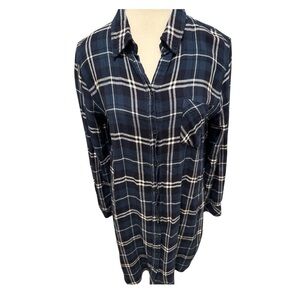 Rails Bianca Tartan Shirt Dress Petrol Blue Spruce White Sz M