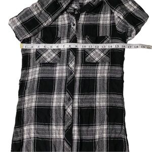 Rails Black Grey White Check Plaid Long Sleeve Button-Front Mini Dress Women XS