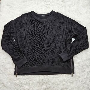 Rails Black Marlo Flocked Velvet Cheetah Print Side Zipper Sweatshirt. Size M