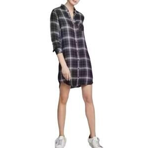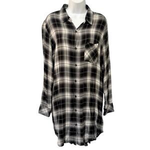 Rails Black White Plaid Button Down Long Sleeve Bianca Soft Shirt Dress size M