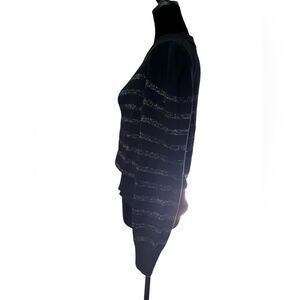 Black with Soft Shimmer Metallic Silver Stripes Allegra Knit Sweater