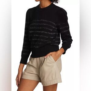 Rails Black and Metallic Silver Striped Allegra Knit Cashmere Sweater Size XS