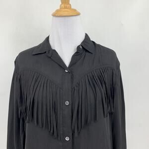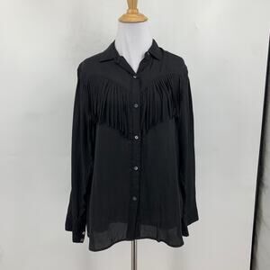 Rails Blouse Women S Small Black Dallas Fringed Satin Western Button Shirt *RARE