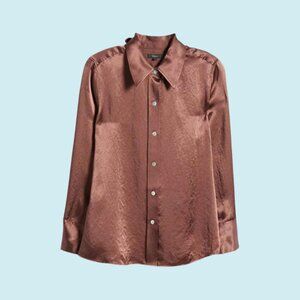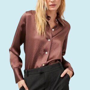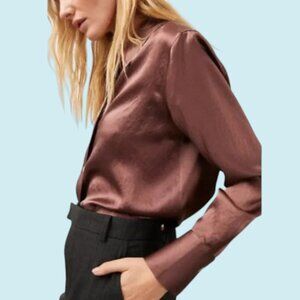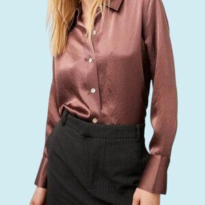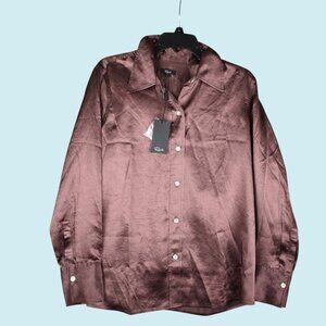 Rails Blouse Women's Large Andrea Nutmeg Brown Satin Long Sleeve Button Down