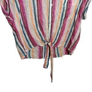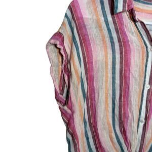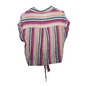 Rails Blouse Women's Small Button Up Short Sleeve Collared Metallic Linen Top