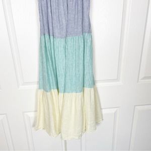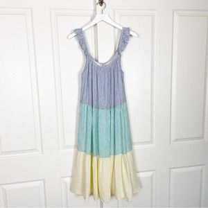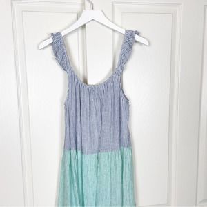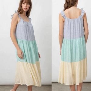 Chic midi dress by Rails. Features tiered design. Sleeveless with ruffle straps. Perfect for casual outings.