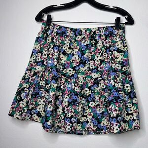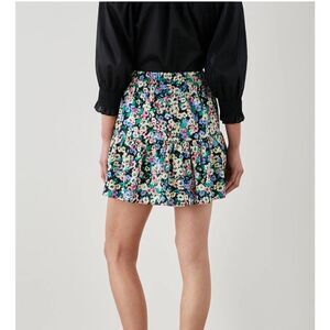 This mini skater skirt by Rails features a beautiful blue and white floral print with a tiered design that adds a playful touch. Perfect for casual outings or resort wear, it offers a fitted waistband and a flared silhouette that falls to mid-thigh.