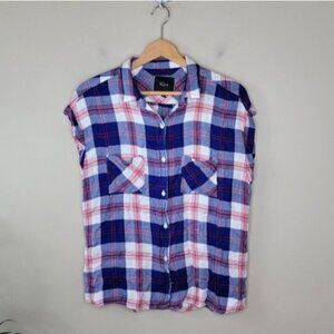 Rails | Blue Plaid Sleeveless Button Front Shirt Size Medium