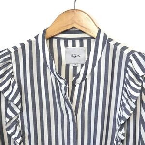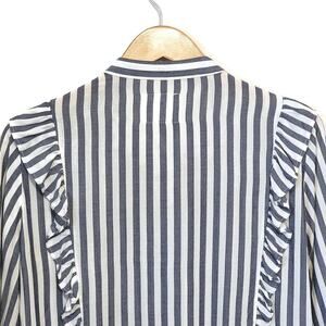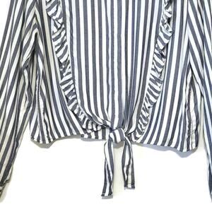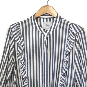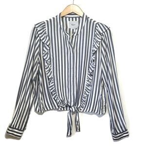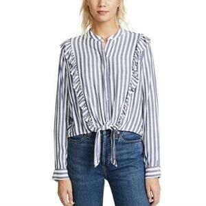 Rails Blue White Stripe Ruffle Tie Waist Long Sleeve Button Down Shirt M Chic