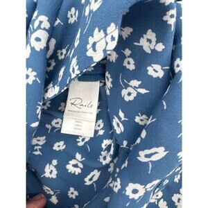 Rails Blue and White Boho Floral Short Sleeve Tie Waist Romper Rayon Small EUC