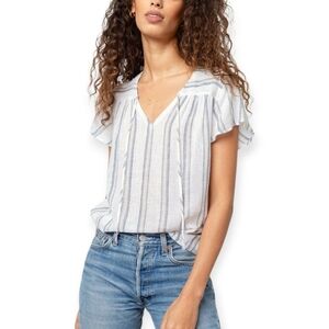 Rails Blue and White Viera Ryland Stripe Ruffle Blouse M
