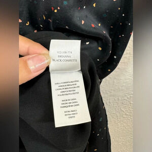 Rails Brianna 100% Silk Slip Dress in Black Confetti Women’s Size XS. Mini, spaghetti straps, sleeveless, v-neck. More of a soft faded black. Lining: 100% Polyester. Made in China. Dry clean.