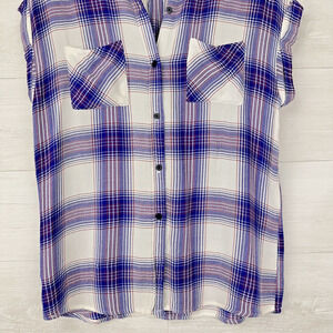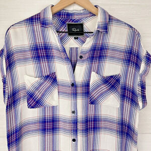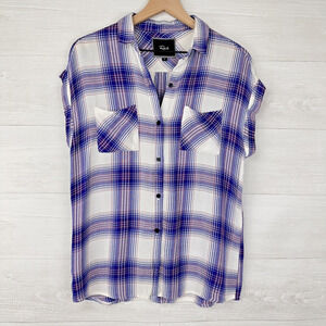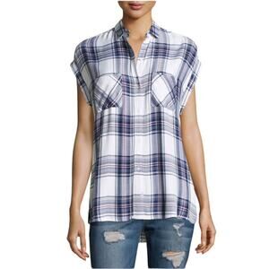 Rails Britt Plaid Button Up Shirt Women's XS Cap Short Sleeve Blue White Rayon