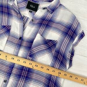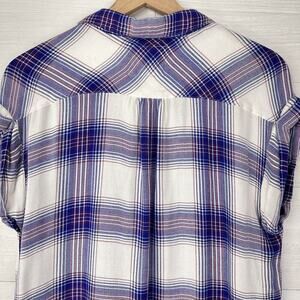 Rails Britt Plaid Button Up Shirt Women's XS Cap Short Sleeve Blue White Rayon