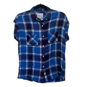 Rails Britt Women's S Cap Sleeve Top Santorini Royal Blue Plaid Button Down Soft