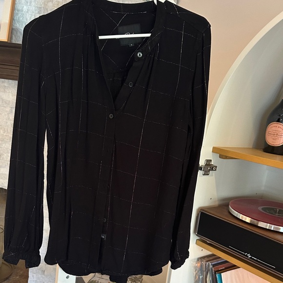Rails brand, black button down with gold details, soft cotton blend fabric