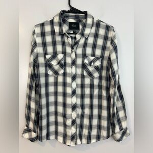 Rails Button Down Rayon Wester Collared Shirt White, Blue, Brown Size Medium