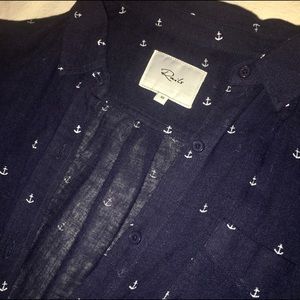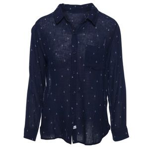 Made from linen and rayon mix, the soft linen Rails Charli Shirt in Navy Anchor will keep you cool on warmer days. The Navy fabric has a small all over Anchor pattern, which gives this shirt a chic nautical look. The Charli Shirt has a button down front, classic collar, single breast pocket, long sleeves and single buttoned cuffs. It has a slightly longer hem at the back, which makes it perfect to wear with leggings. In buttery PERFECT condition β¨ππ»π¦