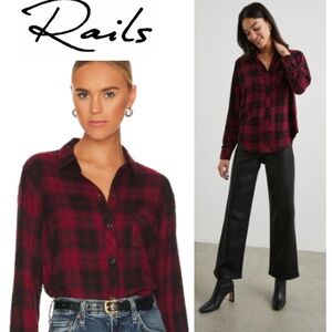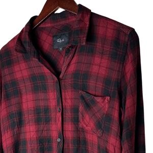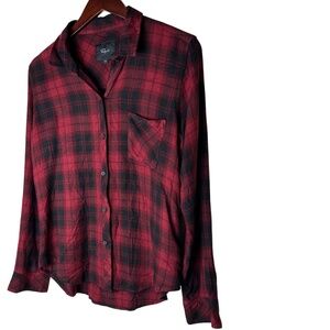 Rails Button Down Shirt Top Medium Plaid Flannel Hunter Crimson Pitch Red Black