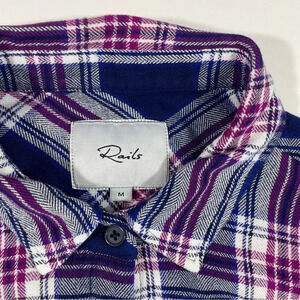 Rails Button Front Flannel Shirt Dress Long Sleeve Size Medium Purple Blue