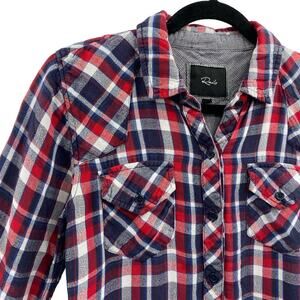 Rails Button Up Shirt size XS Navy Red Plaid Double Gauze Cotton Long Sleeves