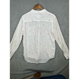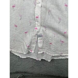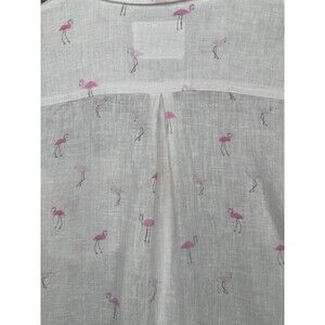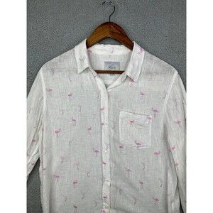 Rails Button Up Womens Small Linen Blend Shirt White Flamingo Long Sleeve Pocket