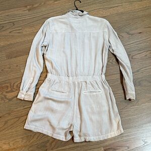 Elegant grayish-green romper with button-up design. Long sleeves. Ideal for everyday wear. Website lists color as “mint” but it is quite muted.