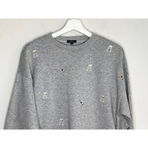 Rails Champagne Embroidery Long Sleeve Varsity Sweatshirt Gray Women's Small