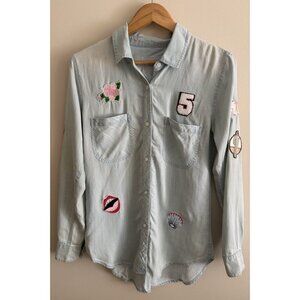 Rails Chandler Floral-Embroidered Chambray Button Down Shirt. Excellent used condition with some small flaws—some stains, shown in photos.