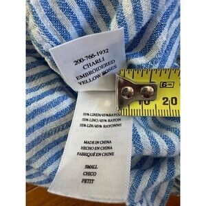 Rails Charli Embroidered Yellow Rose Shirt Blue Stripe Linen Button Down Women S