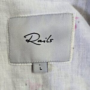 Rails Charli Flamingo Novelty Print Linen Blend White Button-Up Shirt Beachy