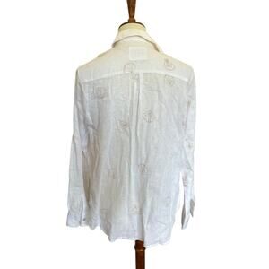 Long sleeve, button-down top with glitter gold shell print, high-low shirttail hem, and single chest pocket. Lightweight, breezy linen fabric mixed with a relaxed body shape makes the Charli the perfect beach-inspired button-down.