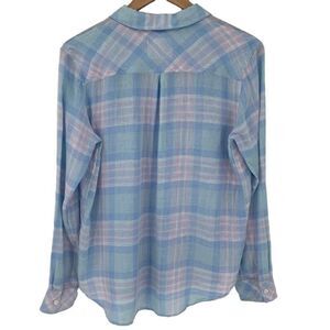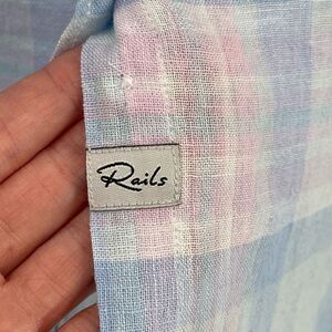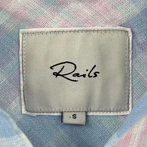 Rails Charli Linen Blend Open Stitch Shirt Button Up Women Small Aqua Pink Blue