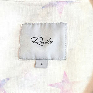 Rails Charli Linen Shirt Tie Dye Stars Button Down White Relaxed Fit Casual L