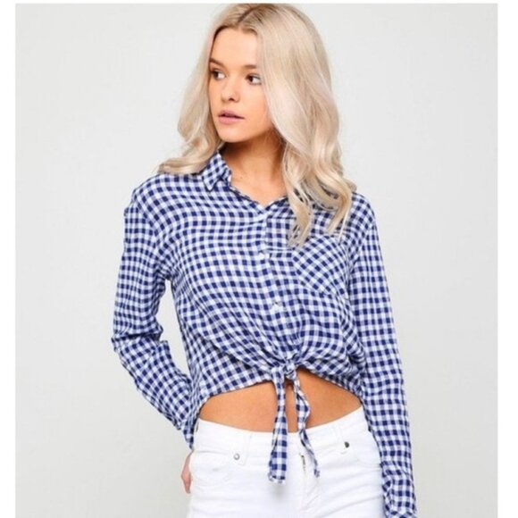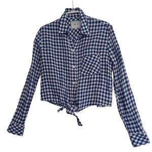 Rails Check Top Val Blue Gingham Long Sleeve Tie Front Shirt Size XS