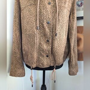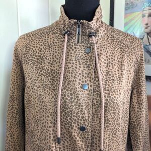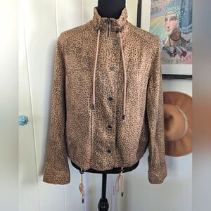 Description: Rails Tennessee Tensley Zip Front Tawny Cheetah Sports Print Jacket sz SM EUC, Streetwear Rebel Punk Athleisure the Tennessee is a long sleeve, heavy tencel funnel jacket with button and zip front closures, stand up collar, two side slip pockets, drawstring at the collar and waist, unlined