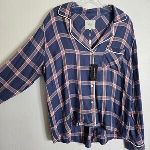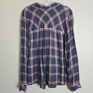Rails Clara Bluebell Coral White Plaid Button Up Lounge Flannel Size M Leisure