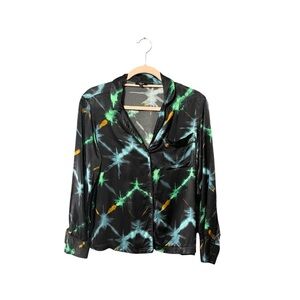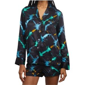 Rails Clarise Satin Pajama Set in black multi colored neon ikat.